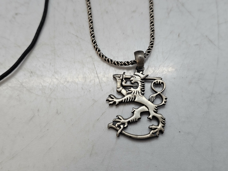 #1380 - Hopeakoruja: Mm. iso Suomi-leijona riipus