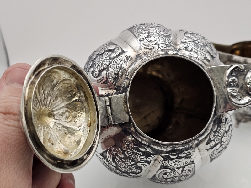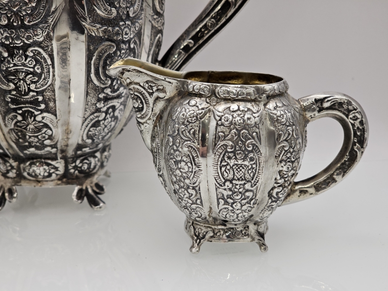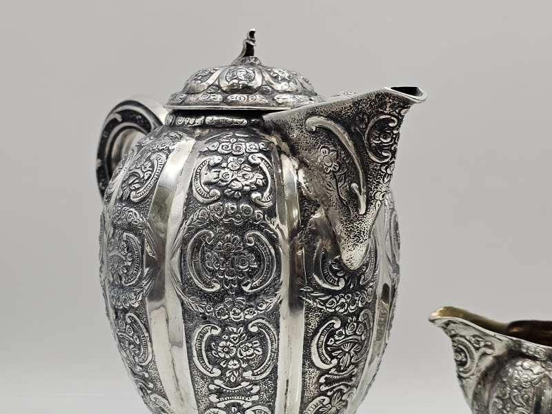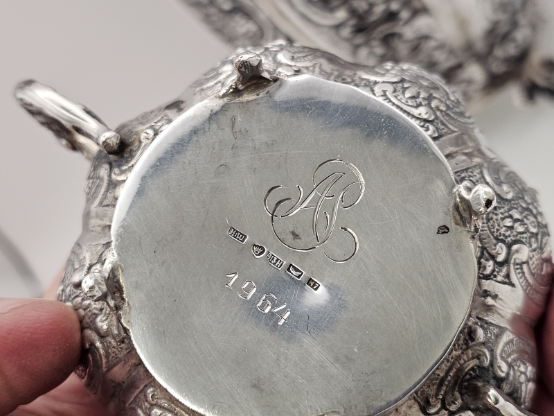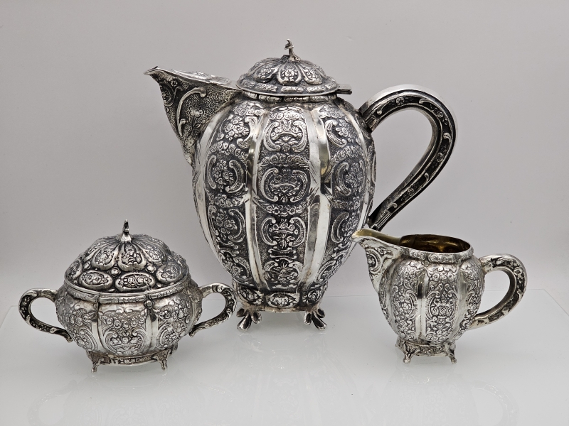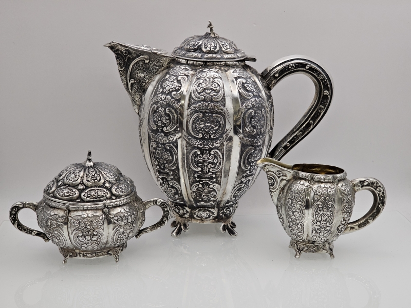 #1381 Hopeinen näyttävä kahvikalusto, 3-osainen, v. 1956 & 1961