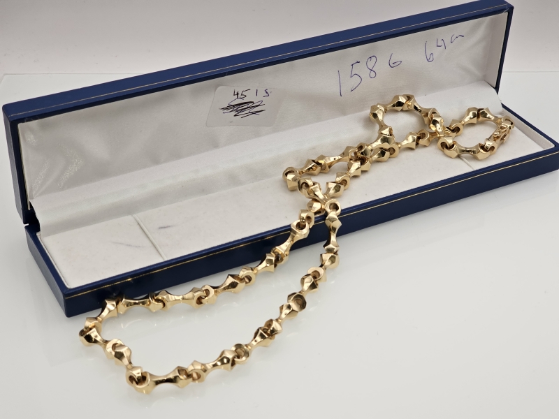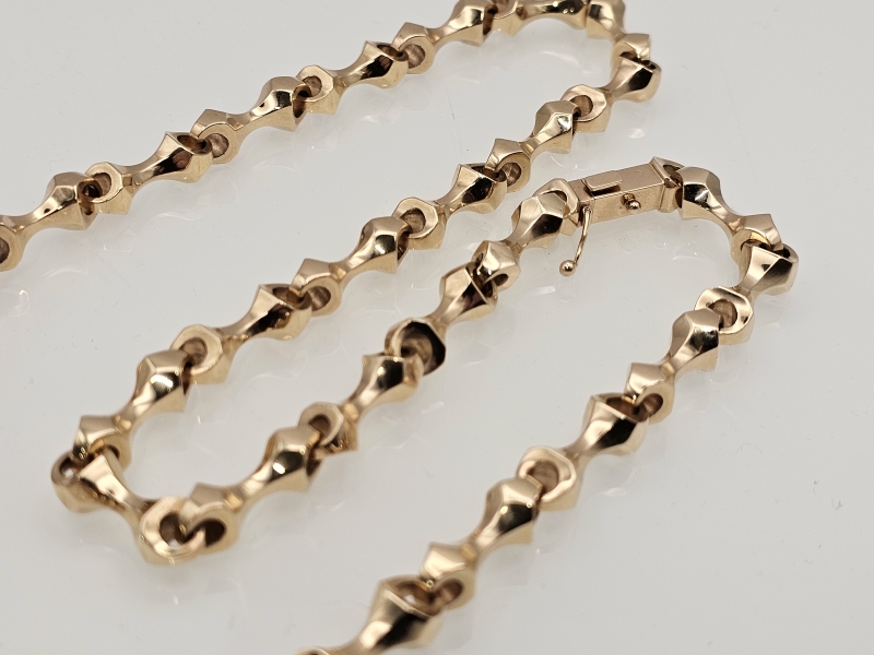 #1396 14k kultainen poikkeuksellisen näyttävä koiranluu -kaulaketju, 158g