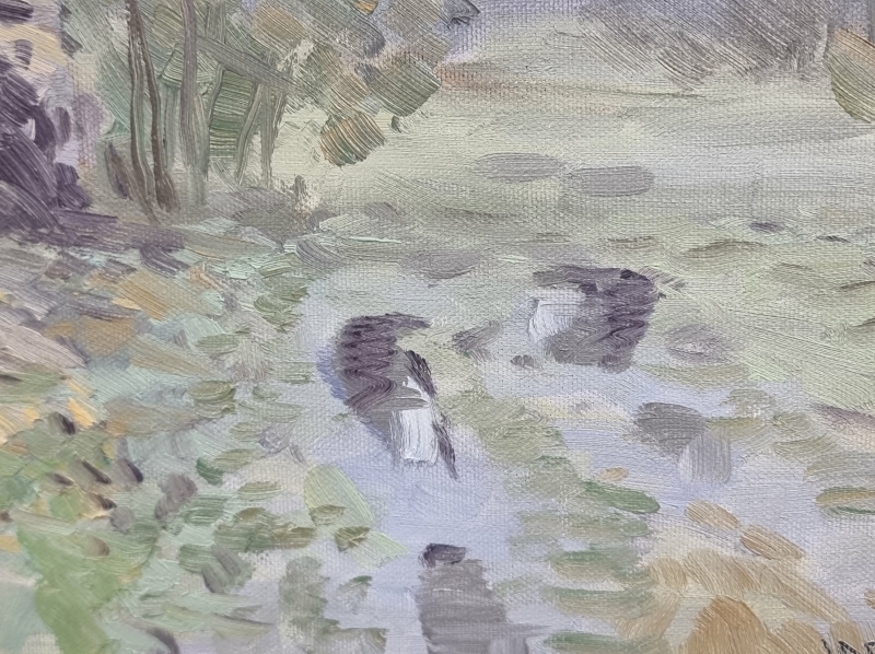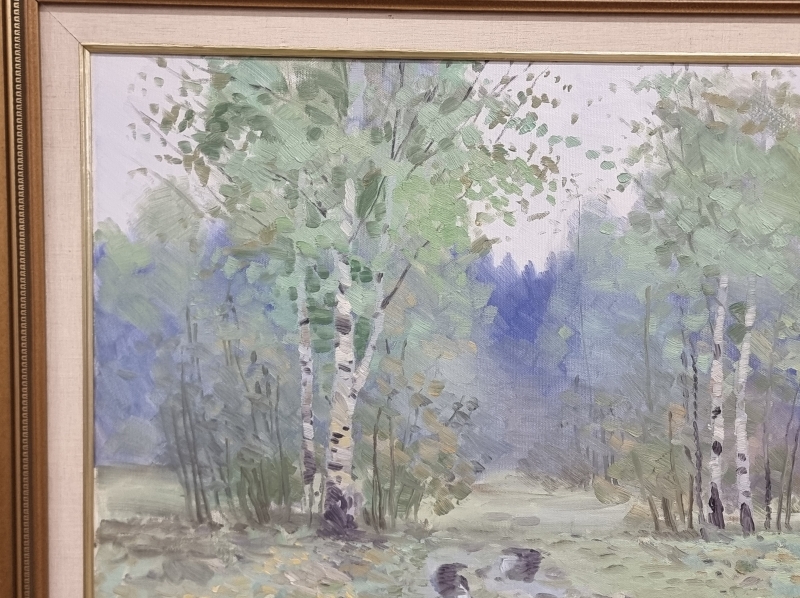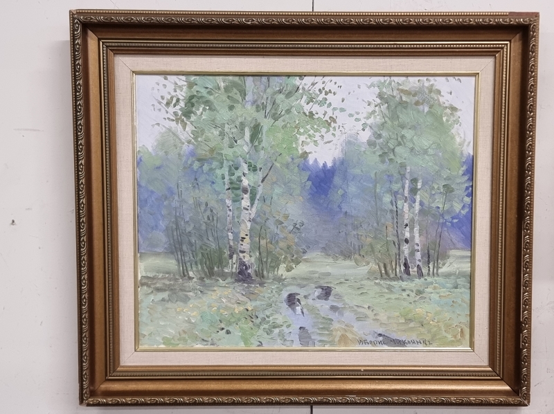 #2371 Öljyvärimaalaus Boris Mikojan "Kärrytie Haikon puistossa" v. 1982