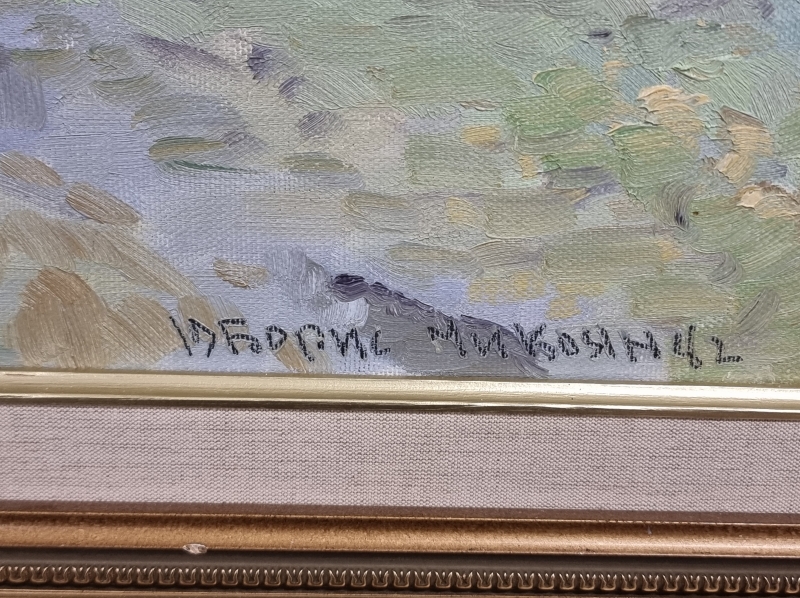 #2371 - Öljyvärimaalaus Boris Mikojan "Kärrytie Haikon puistossa" v. 1982