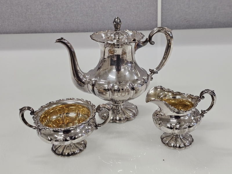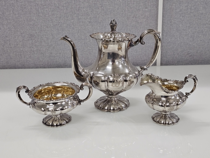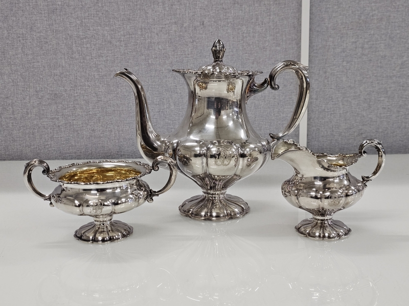 #1385 - Hopeinen 3-osainen kahviastiasto