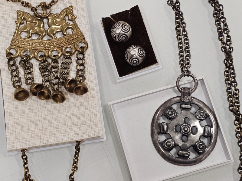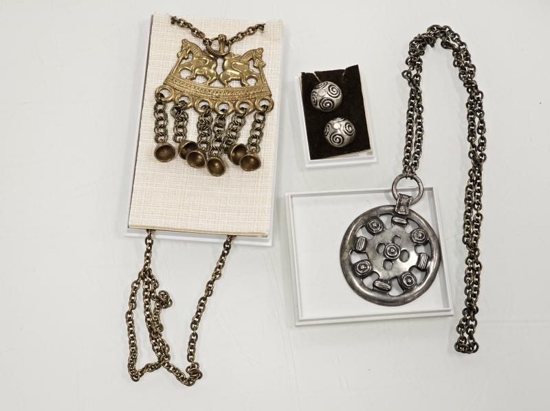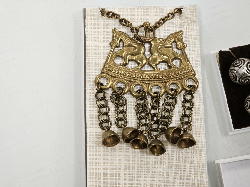 #1391 - Kalevala korun koruja: Mm. hopeiset kalvosinnapit, Kaksi ratsastajaa ym.