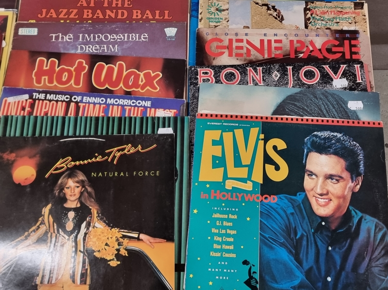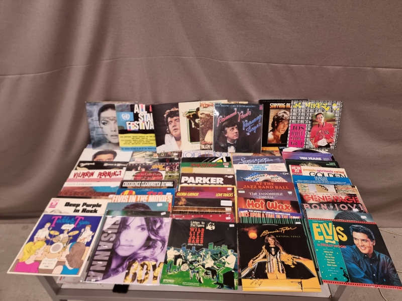 #2275 - Erä LP-levyjä, n. 60kpl. Elvis, Whitesnake, MC Nikke T, Juice Leskinen, RAM ym.