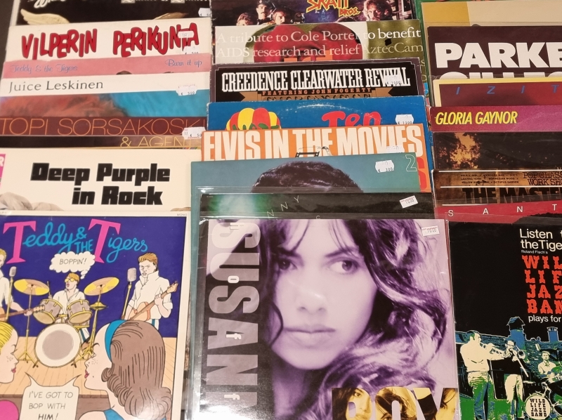 #2275 Erä LP-levyjä, n. 60kpl. Elvis, Whitesnake, MC Nikke T, Juice Leskinen, RAM ym.