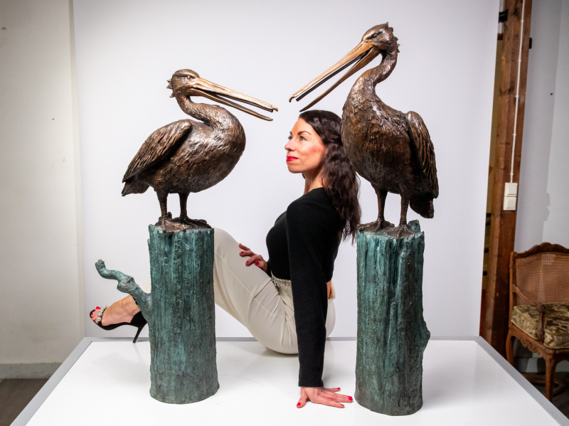 #1817 - 2kpl pronssisia lintupatsaita suihkulähdeliitännällä