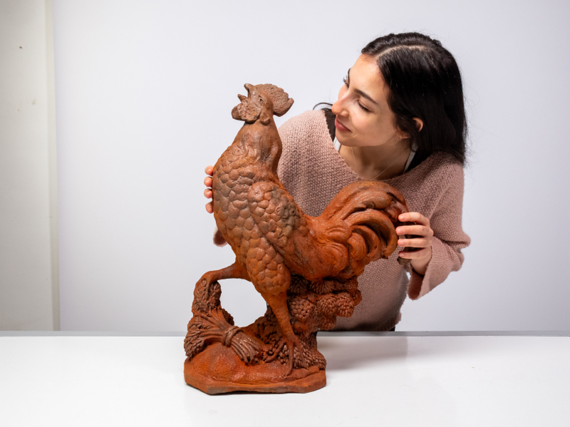 #1851 Rautainen patinoitunut kukkopatsas