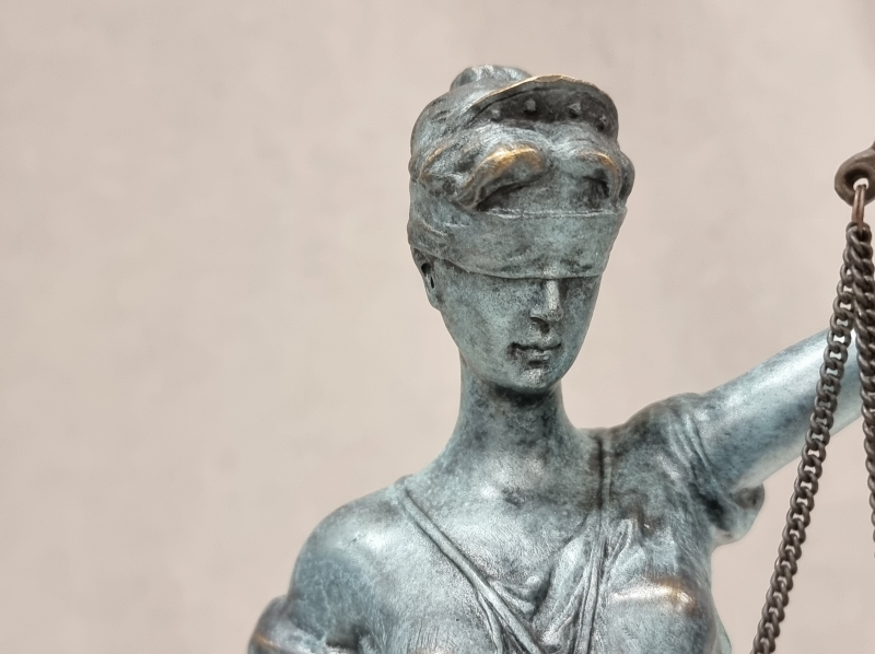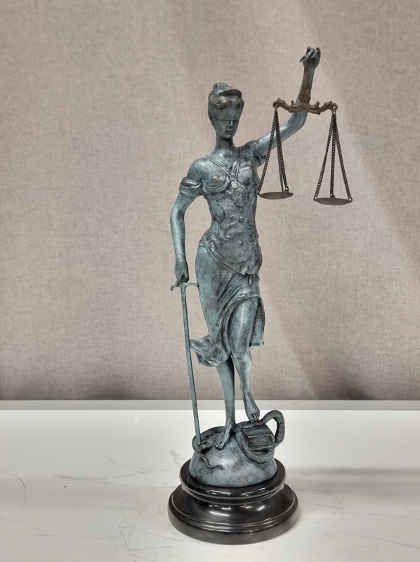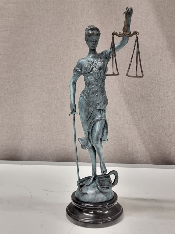 #1999 Pronssipatsas kivijalustalla "Oikeuden jumalatar"