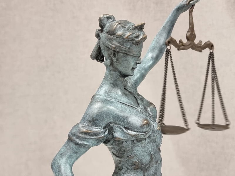 #1999 - Pronssipatsas kivijalustalla "Oikeuden jumalatar"