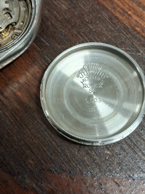 Vikoja mm. sekuntiviisari puuttuu, lasike irti, mekanismi ei toimi, osia muista kelloista. H: 34mm. Ref: 6303