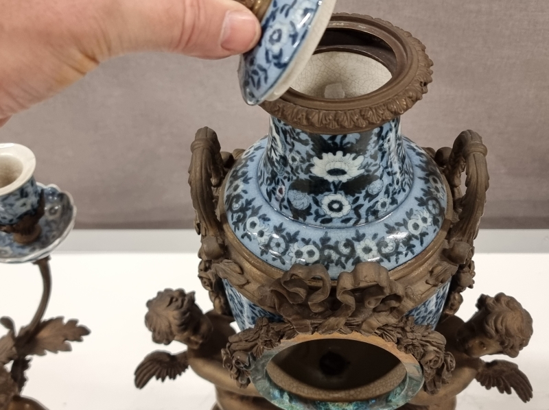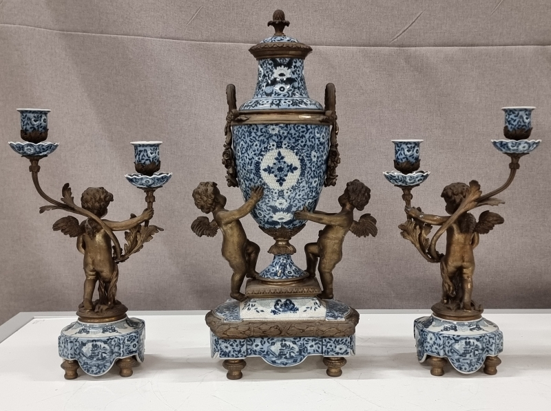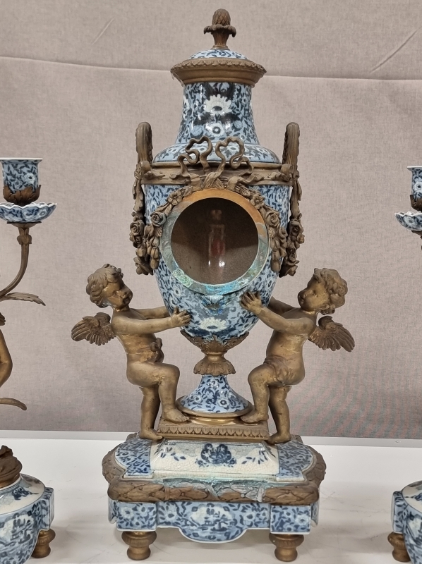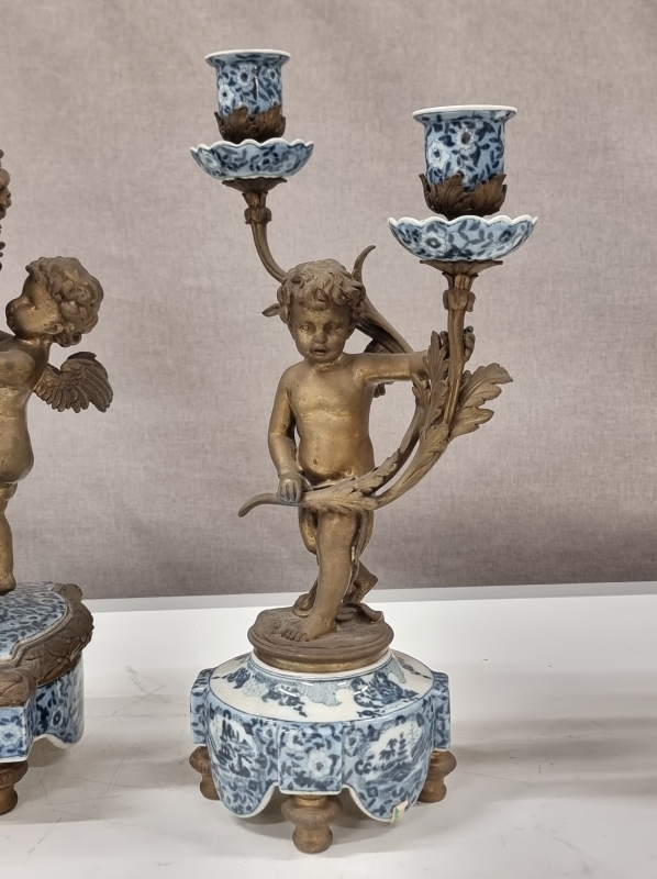 #2181 - Pronssiposliiniset kynttilänjalat + kellon runko