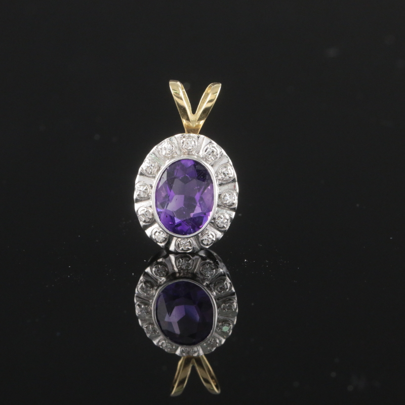 #1281 14k kultainen timantti/ametistiriipus