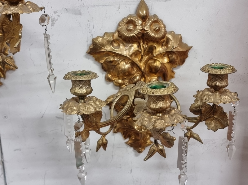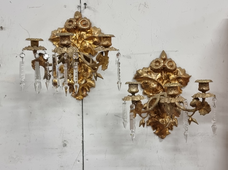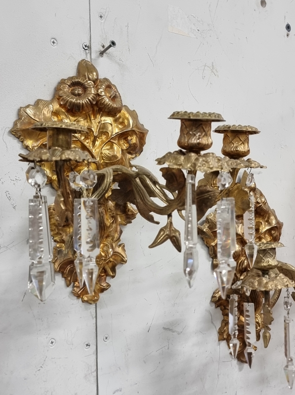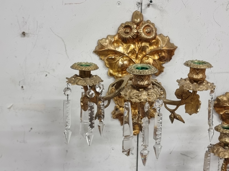 #2282 - 2kpl seinäkynttelikköjä kristalleilla.