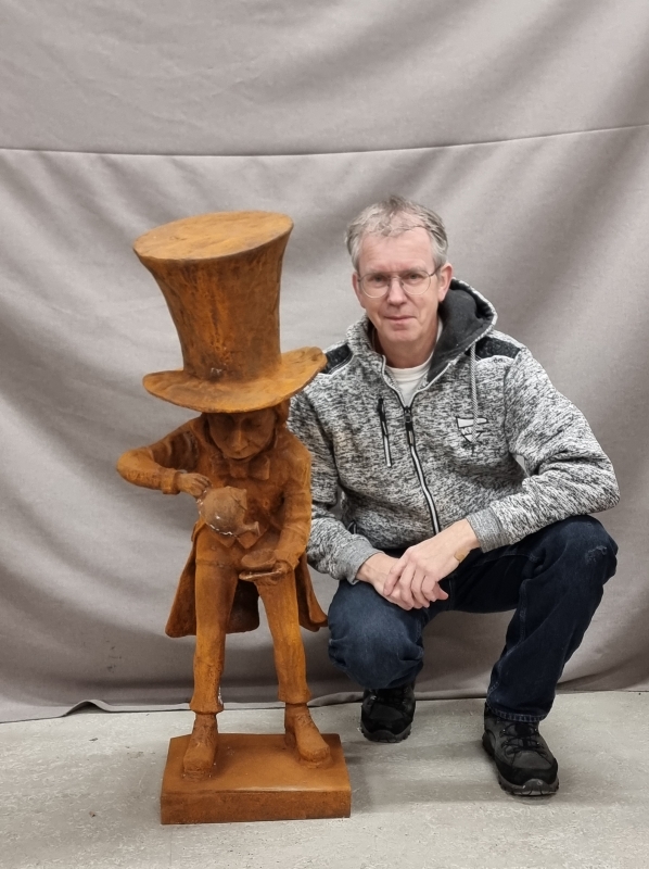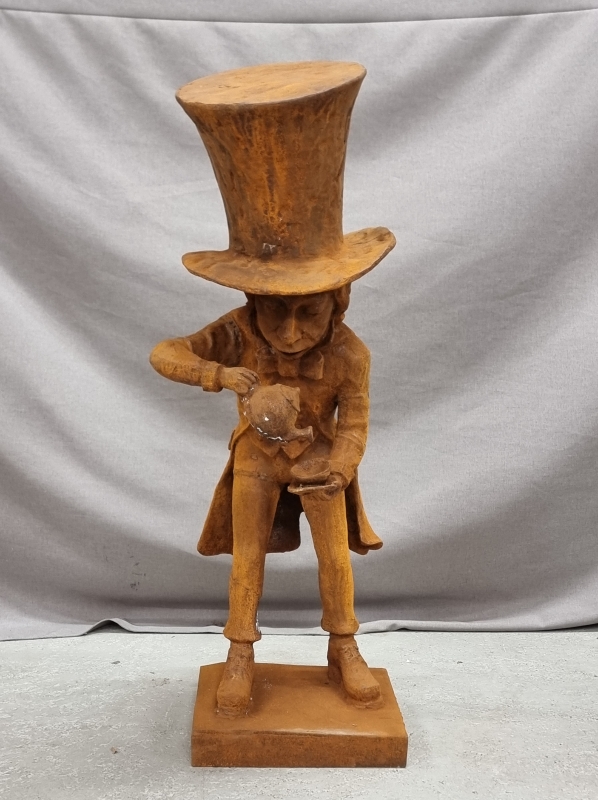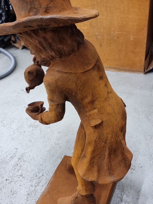 #1818 - Todella hieno ja erikoinen löytö! Patinoitunut Hullu hatuntekijä valurautapatsas Liisa Ihmemaassa -sadusta.
