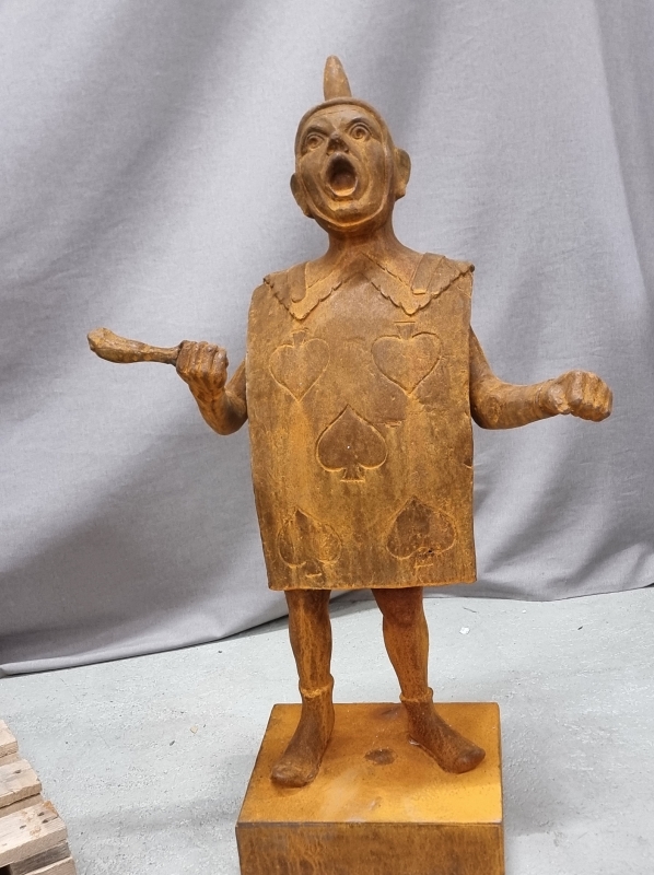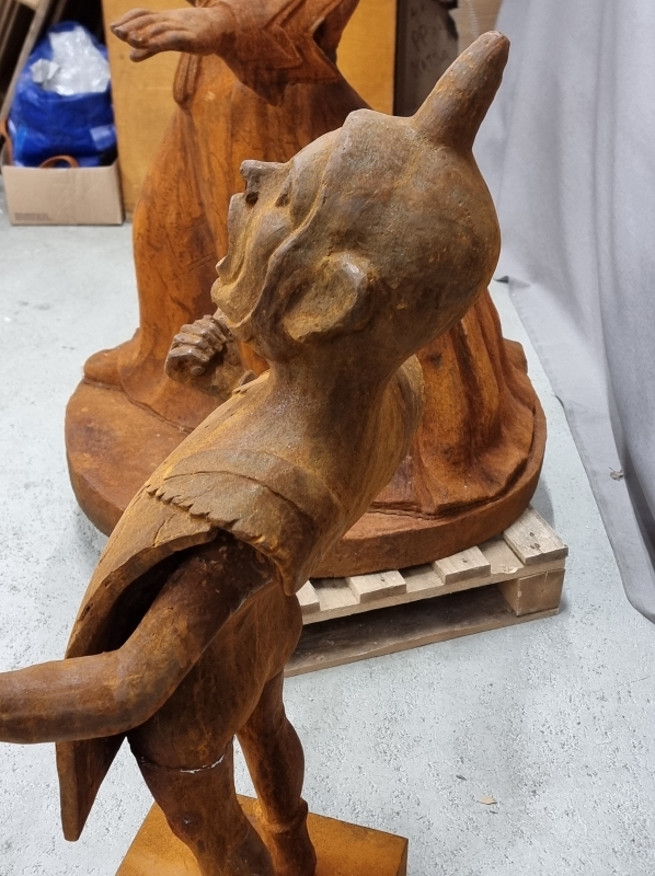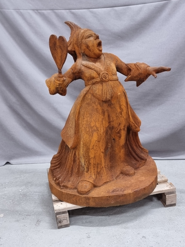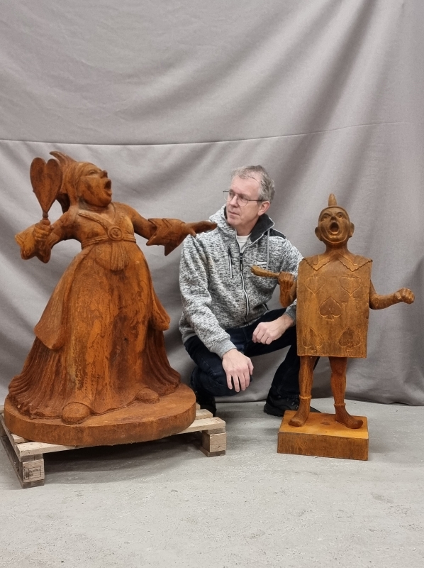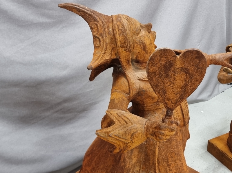 #1820 Todella hieno ja erikoinen löytö! 2kpl patinoituneita valurautapatsaita Liisa Ihmemaassa -sadusta. Herttakuningatar ja sotilas