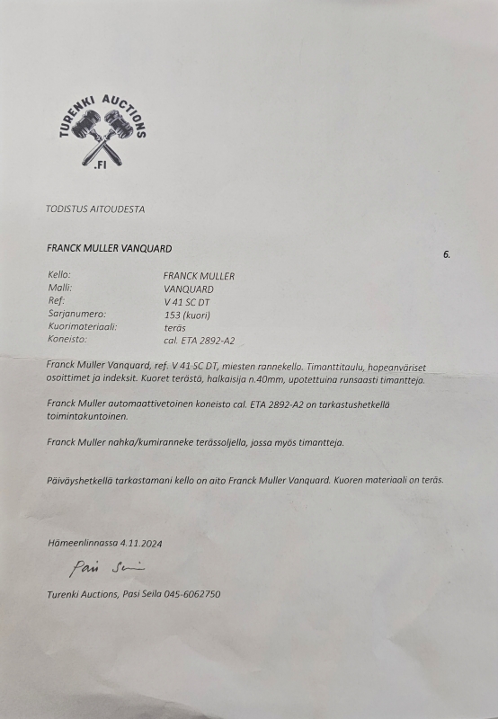 Leveys 40mm. Ref: V 41 SC DT. Mukana aitoustodistus. Toimii