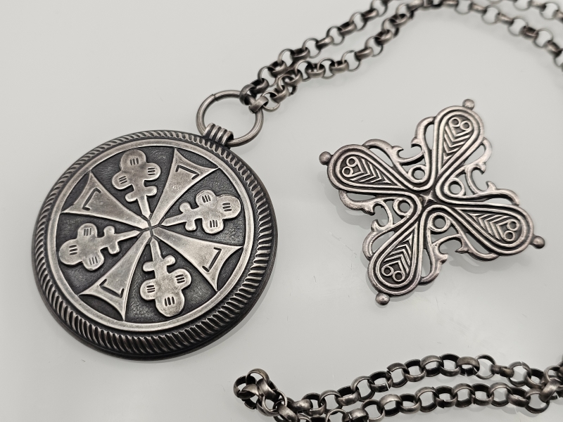 #1442 2kpl Kalevala korun koruja: Räisälän risti & Nastolan riipus