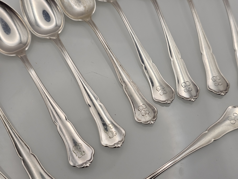 #1457 5+10kpl hopeisia chippendale kahvilusikoita. 221g