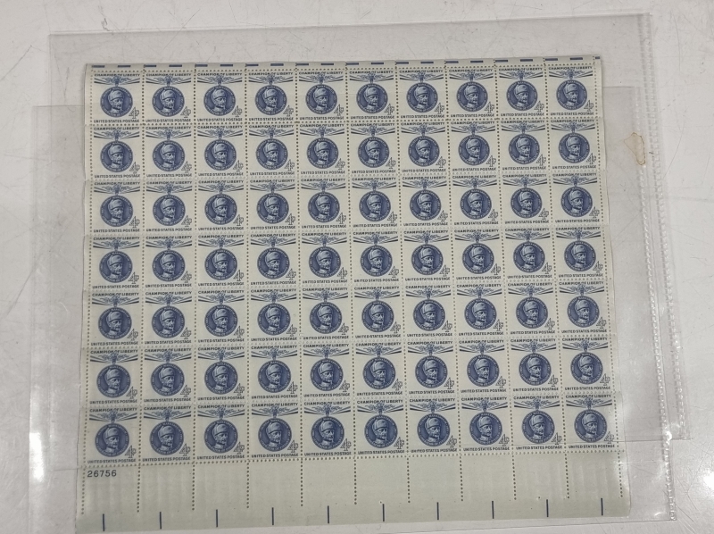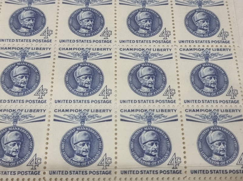 #1728 Täysi arkki Yhdysvaltalaisia 4 sentin Mannerheim -postimerkkejä