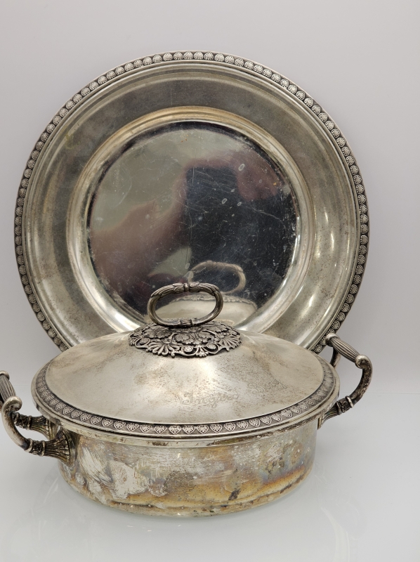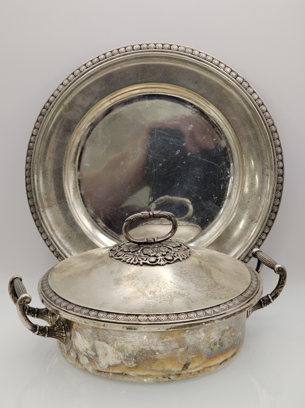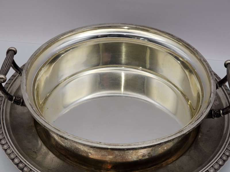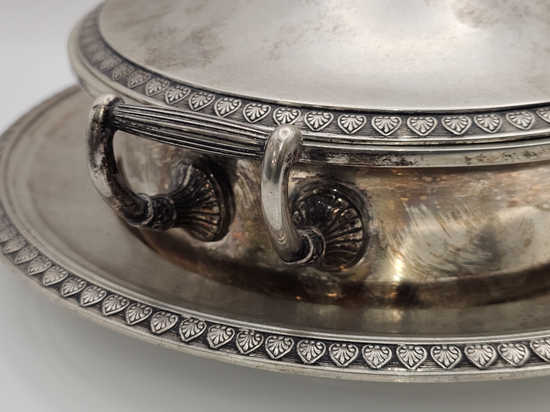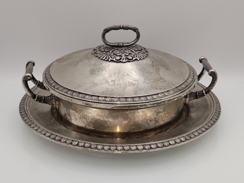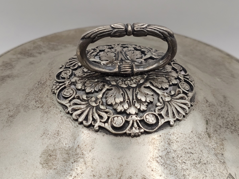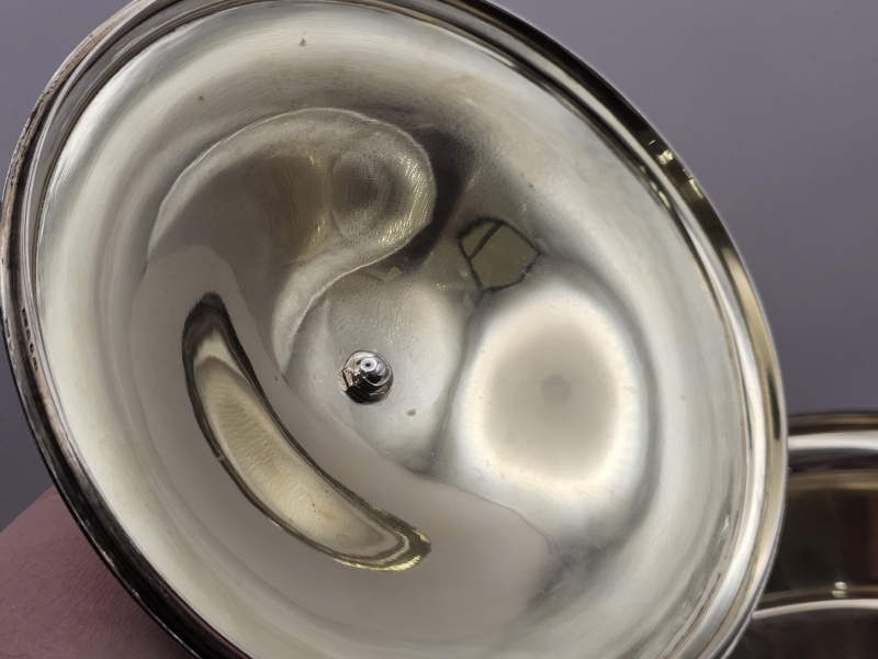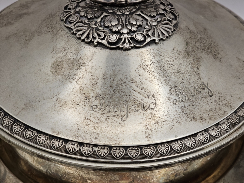 #1466 Hopeinen kannellinen astia aluslautasella, C.F.Carlman, Tukholma v. 1907. 1255g