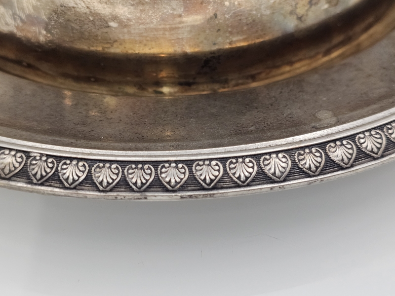 #1466 - Hopeinen kannellinen astia aluslautasella, C.F.Carlman, Tukholma v. 1907. 1255g