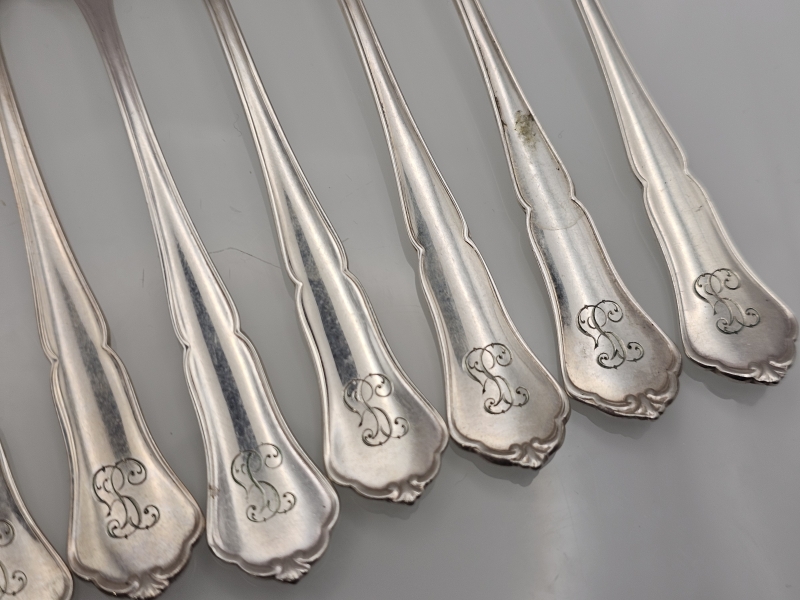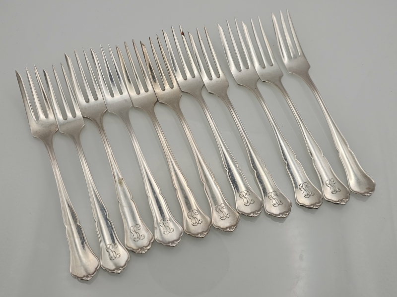 #1468 11kpl hopeisia chippendale -kakkuhaarukoita. 249g