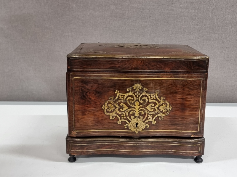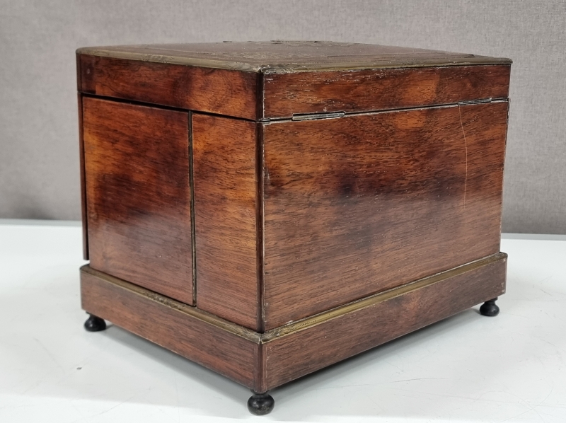 #1826 1800-luvun puinen baarikaappi, satulli, messinkilyötteillä.