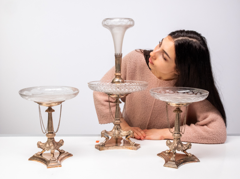 #1889 Todella näyttävä 1800-luvun lopun pöytämaljasarja, 1+2kpl