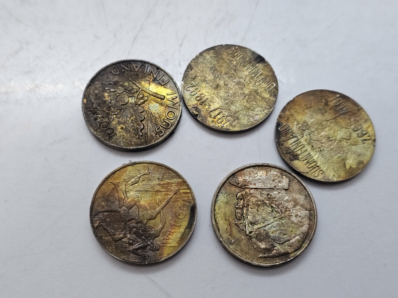 #1488 - 5kpl hopeisia juhlarahoja