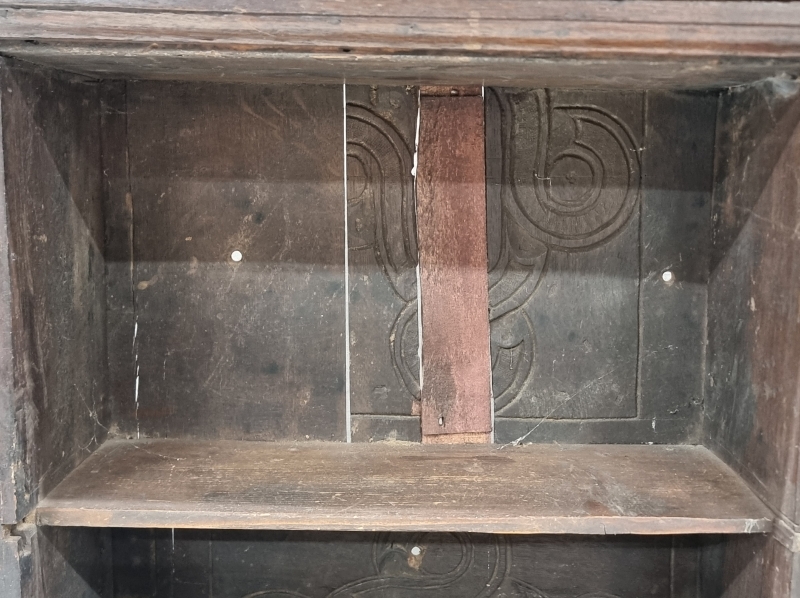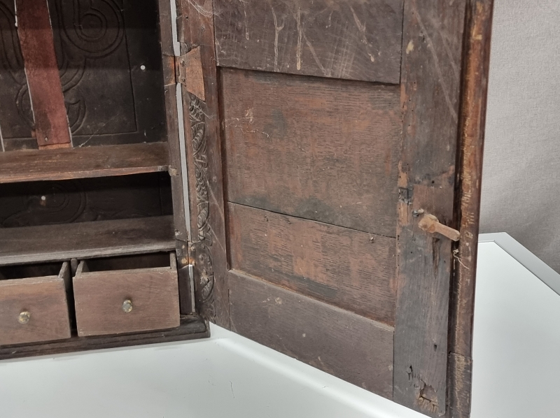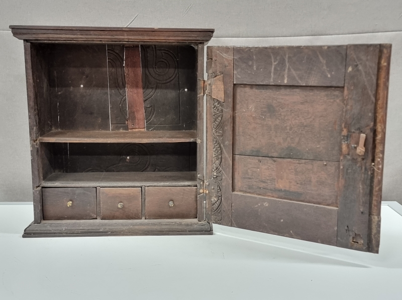 #1831 - Vanha seinäkaappi kolmella pienellä laatikolla
