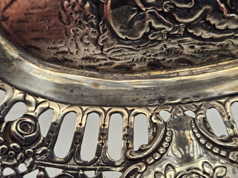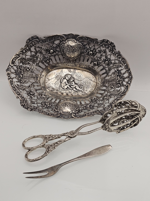 #1500 - Koristeellinen hopeakori + ottimet + haarukka