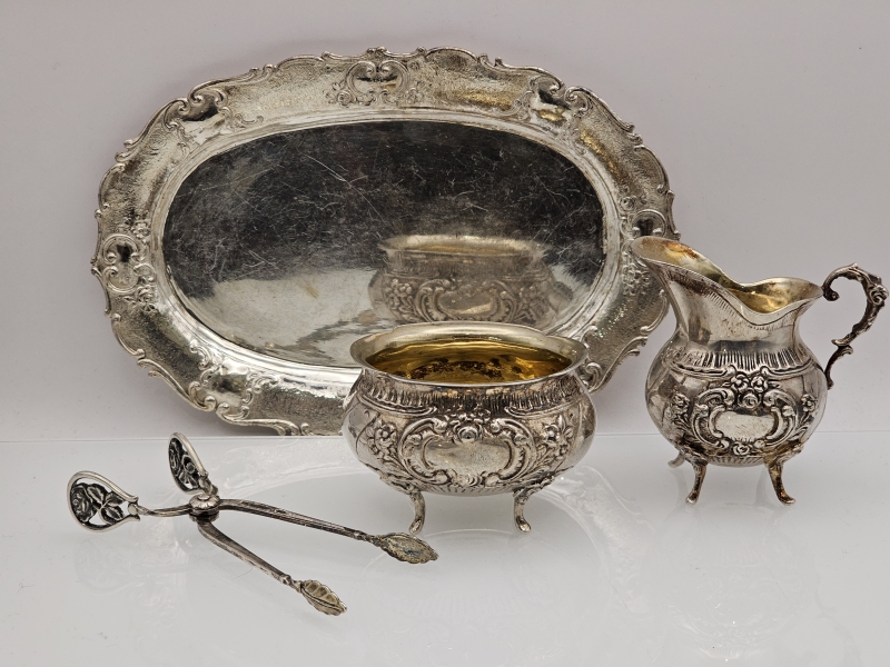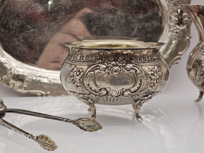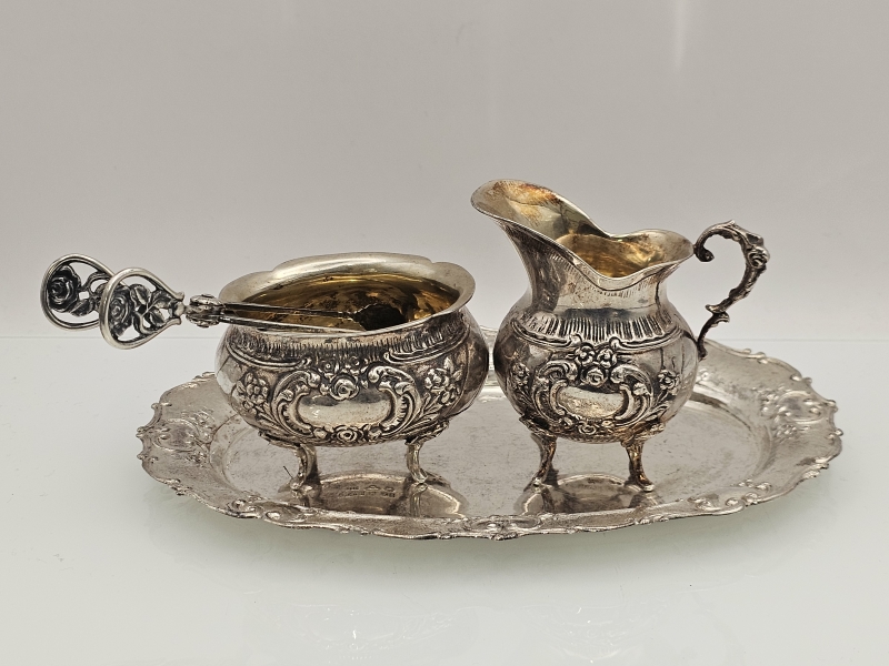 #1505 Hopeinen kermakko, sokerikko, sokeripihdit ja alusta