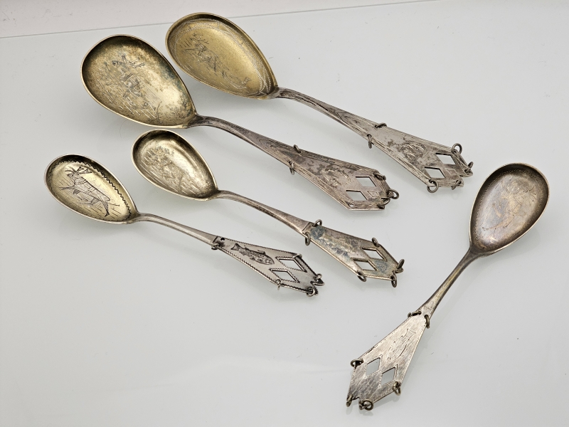 #1514 - 5kpl lapinlusikoita joista 4kpl hopeisia
