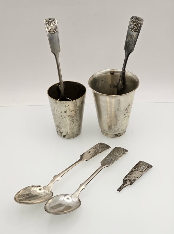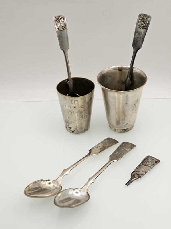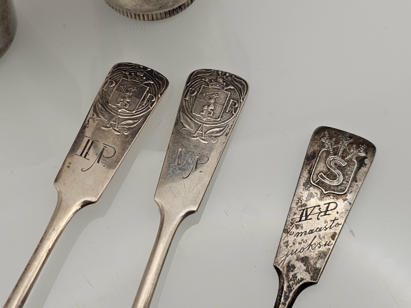 #1520 2kpl hopealusikoita ja katkennut suojeluskunta -hopealusikka + hopeoituja suojeluskuntalusikoita