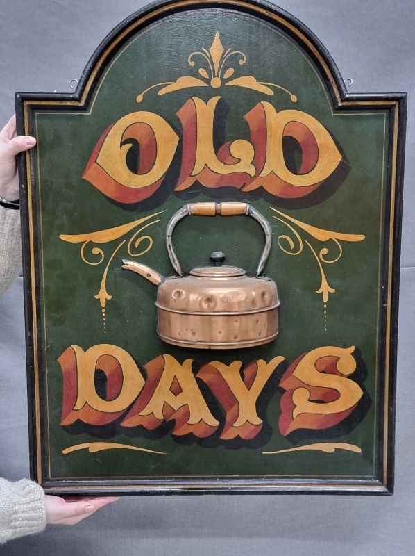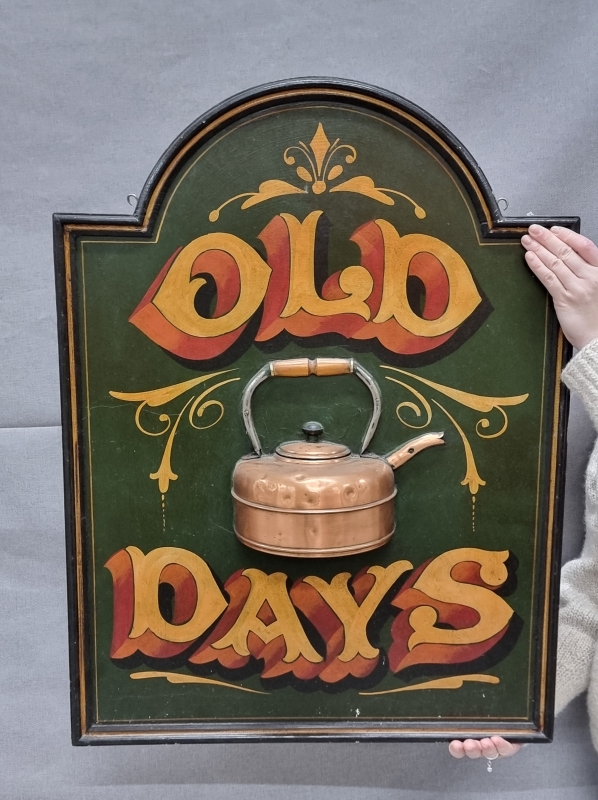 #2147 - Kolmiulotteinen, puinen 2-puoleinen sisustustaulu, Old Days