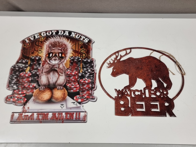 #2411 2kpl peltikylttejä: mm. "Watch for Beer"