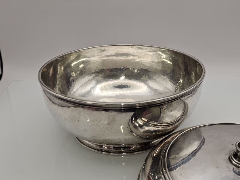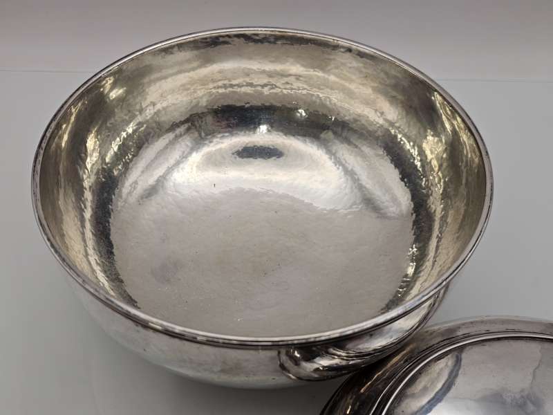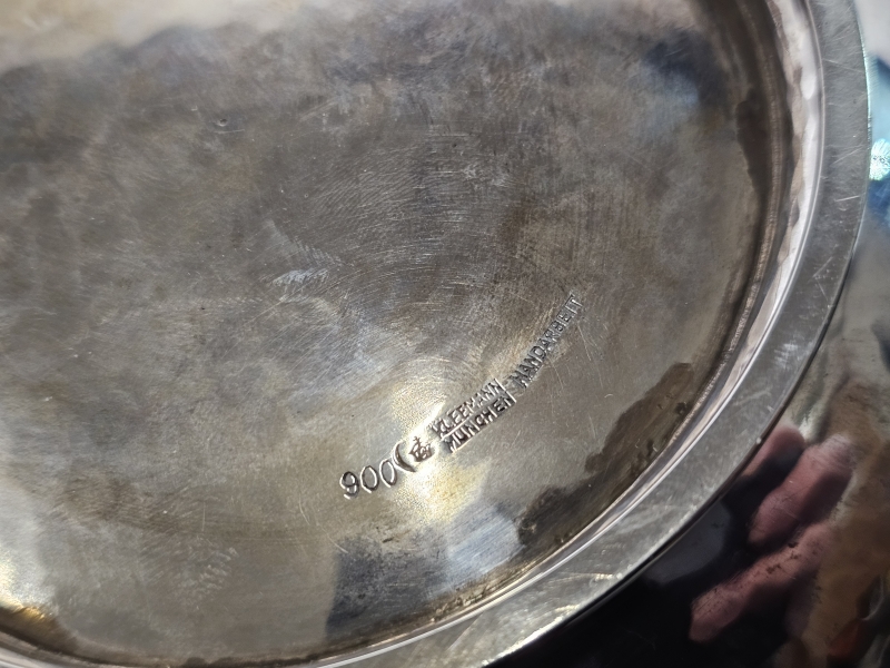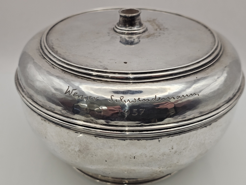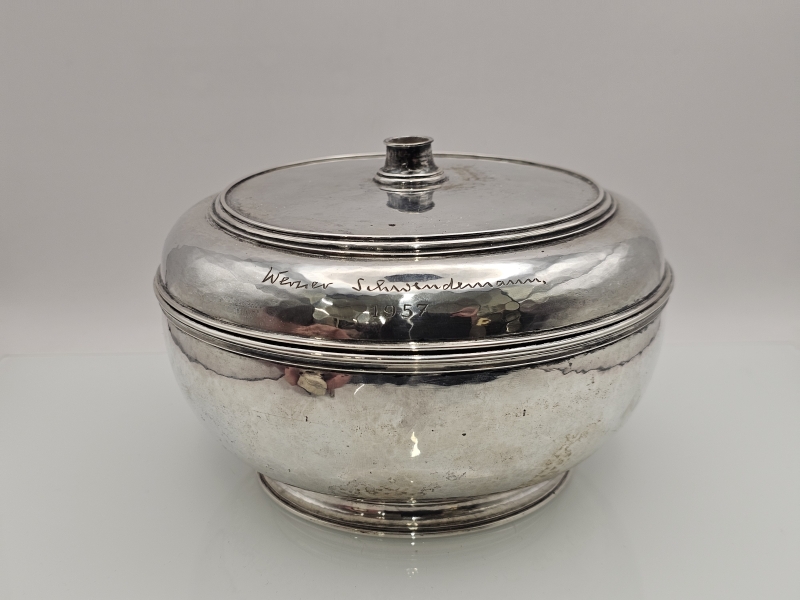 #1561 Hopeinen kannellinen astia, Kleemann München käsityö. 629g