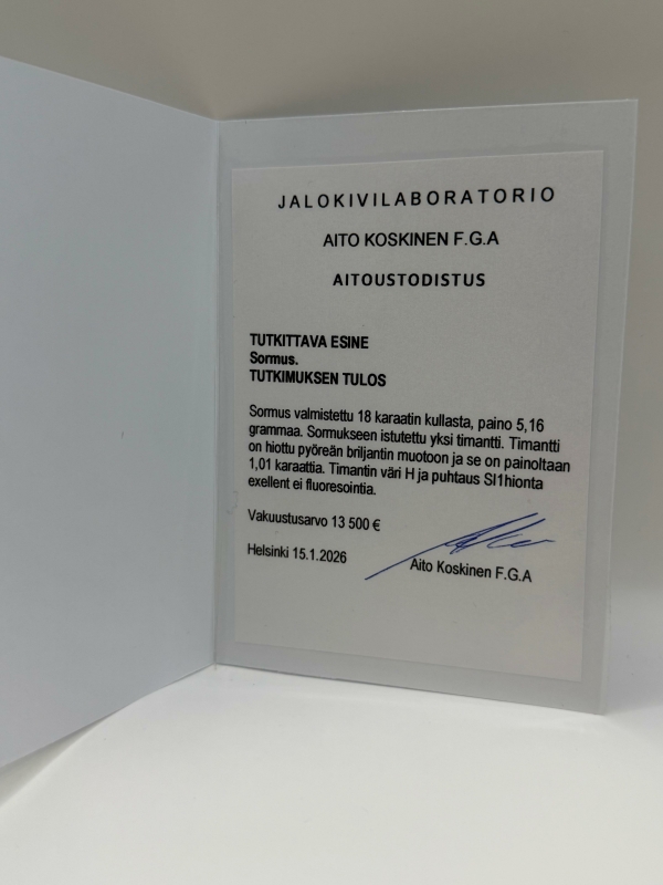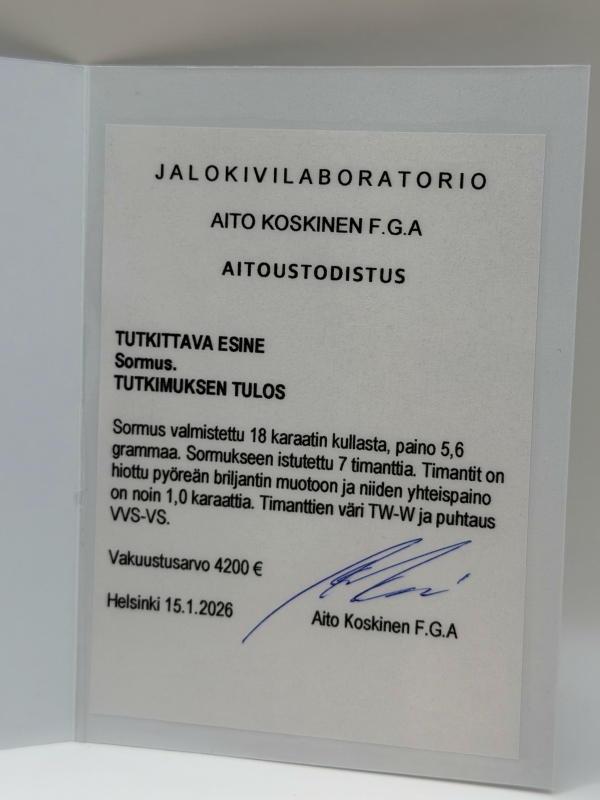Yhteensä 4kpl aitoustodistusta. Koot: 17/17,5. Bruttopainot: 5,16g/ 5,6g