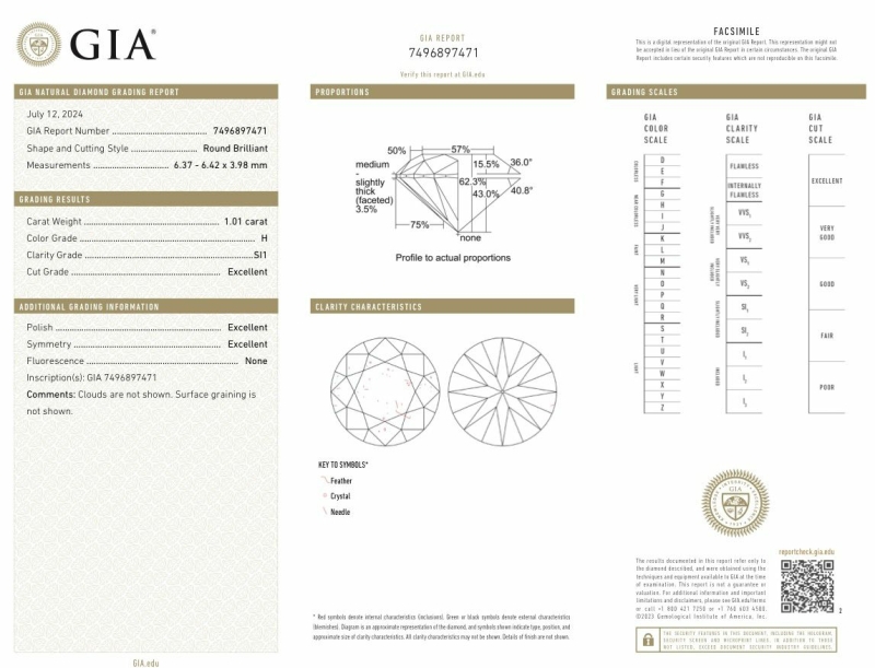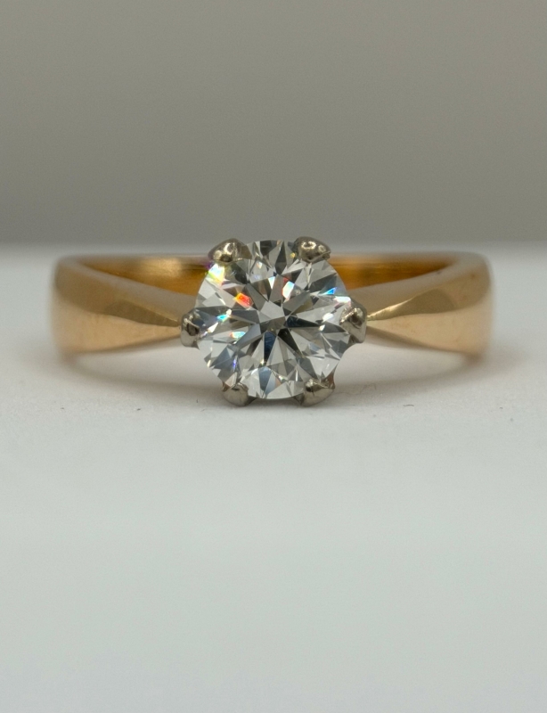 #1516 18k kultainen sormussetti yht. 1kpl/7kpl timanttia (yht. 1,01ct / 1ct), GIA-todistus, 10,76g