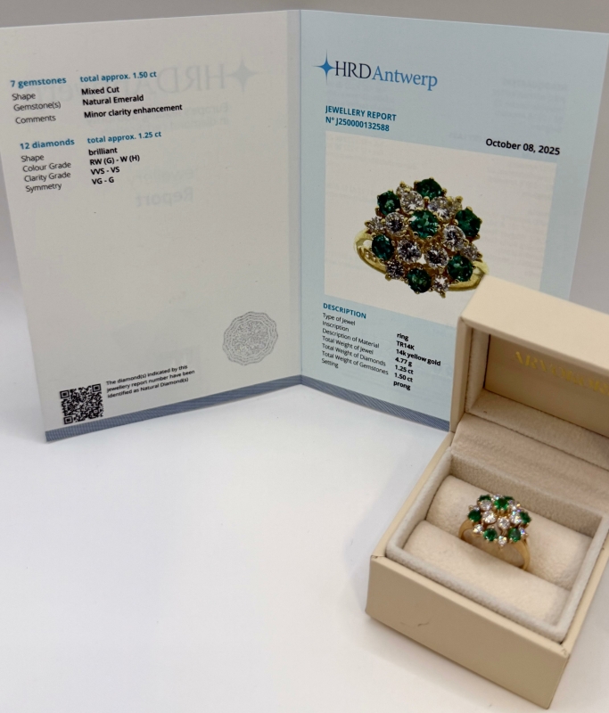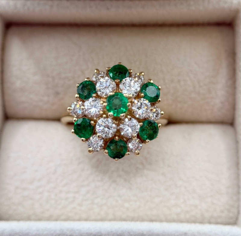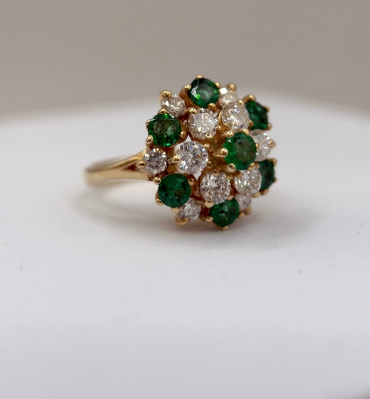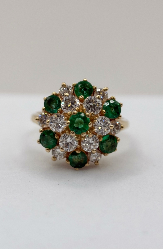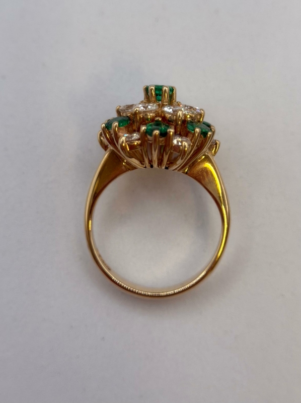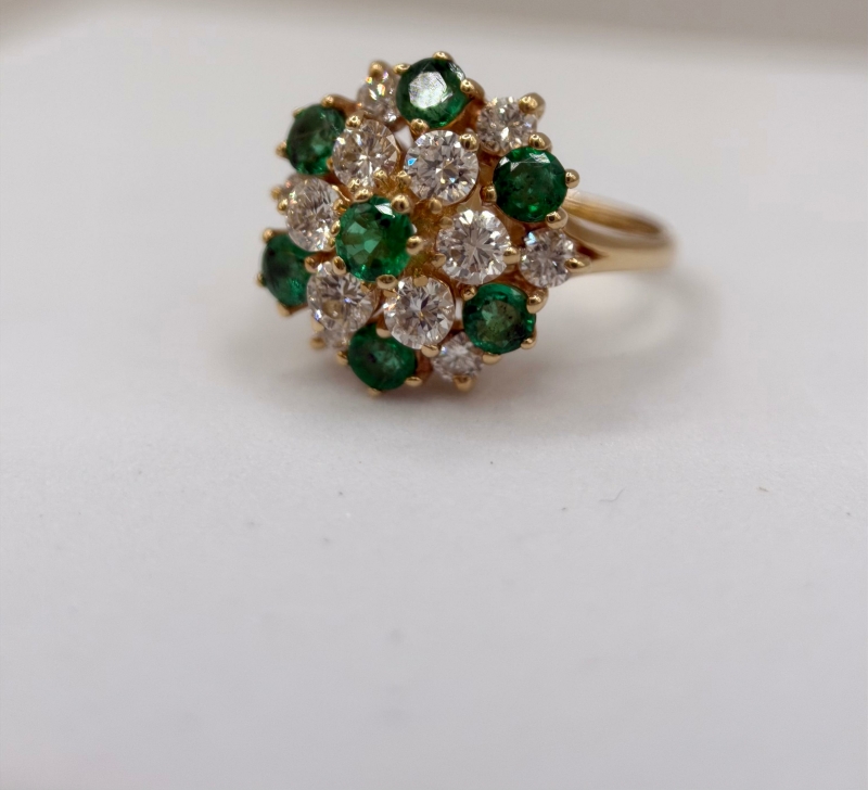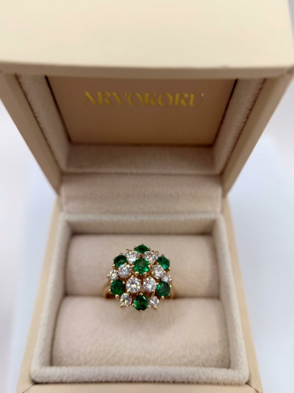 #1564 14k kultainen sormus timanteilla (yht. 1,25ct) ja smaragdeilla (yht. 1,5ct). 4,77g.