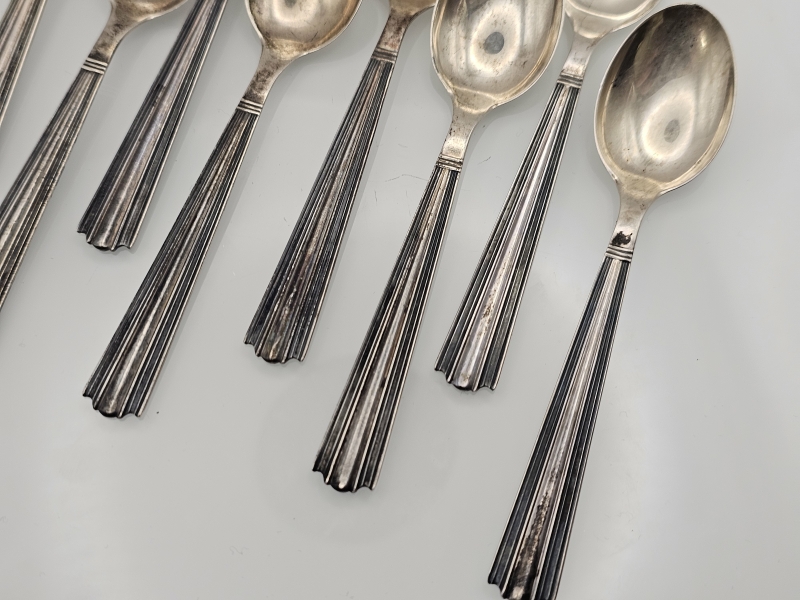 #1565 12kpl hopeisia Margit -sarjan kahvilusikoita ja otinhaarukka. 151g
