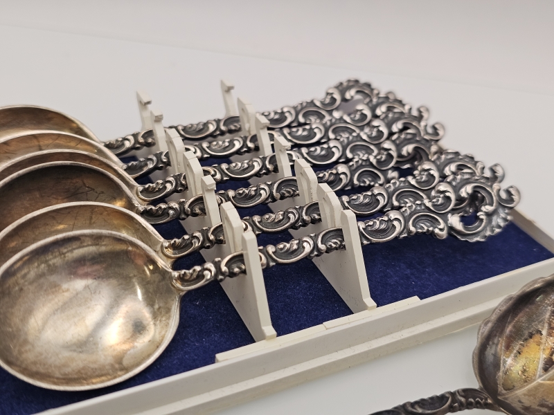 #1572 - 6kpl hopeisia Väinö Hamara lusikoita + sokerilusikka. 91g