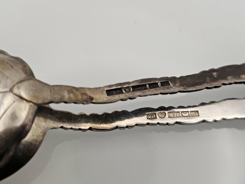 #1572 6kpl hopeisia Väinö Hamara lusikoita + sokerilusikka. 91g