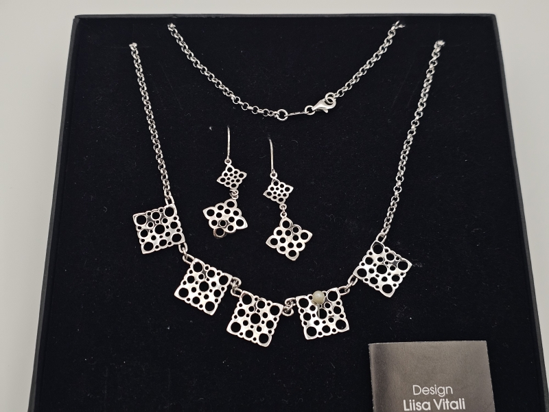 #1581 Hopeiset Liisa Vitali Pitsi korvakorut ja kaulakoru