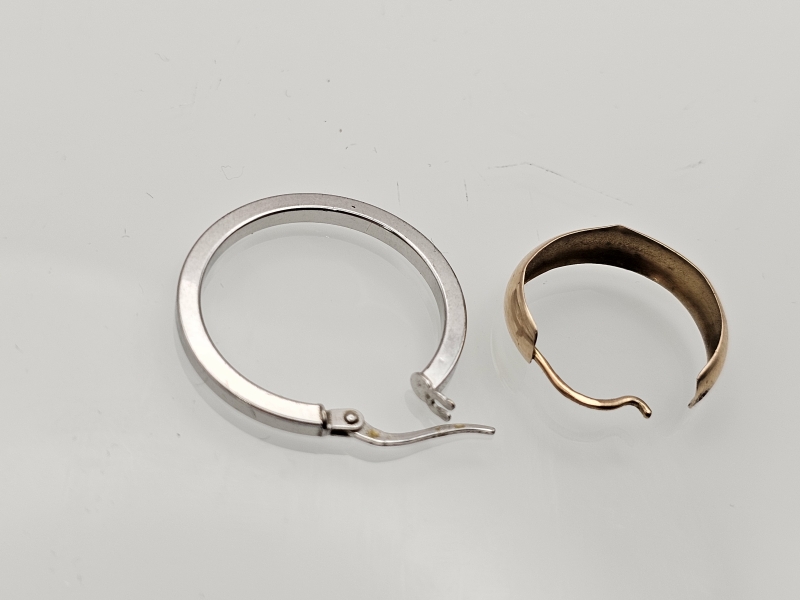 #1599 - 9k valkokultainen korvakoru [0,81g] & 14k kultainen korvakoru [0,64g]