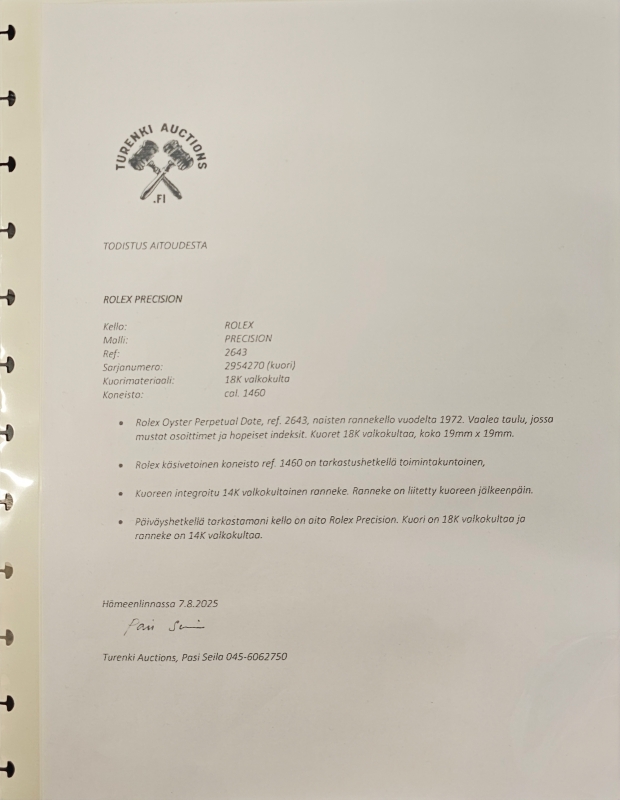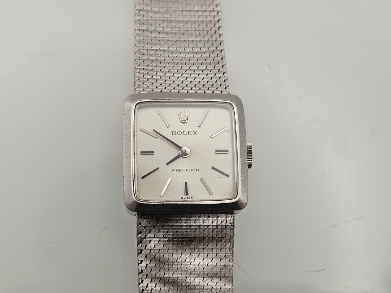 #1600 Rannekello: 18k valkokultainen Rolex Precision v.1972 jossa 14k valkokultainen ranneke, 40,6g