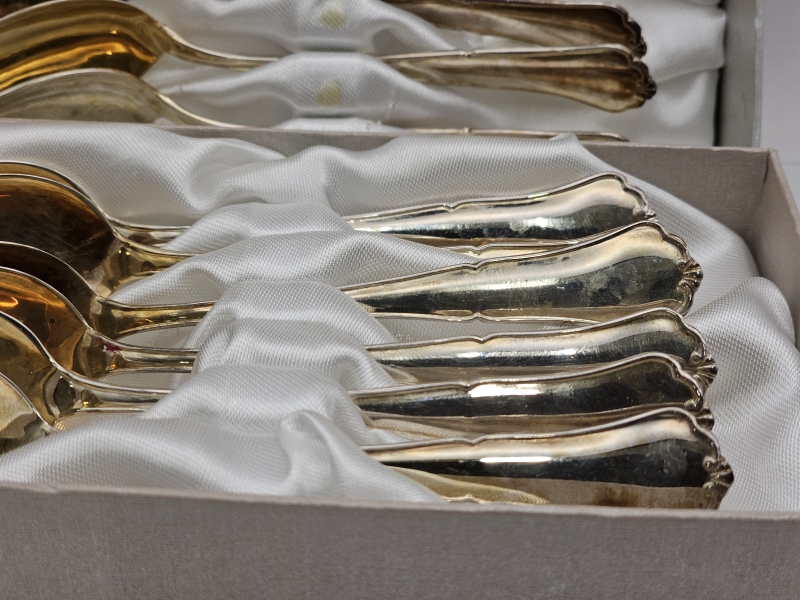 #1610 12kpl hopeisia chippendale kahvilusikoita. 166g