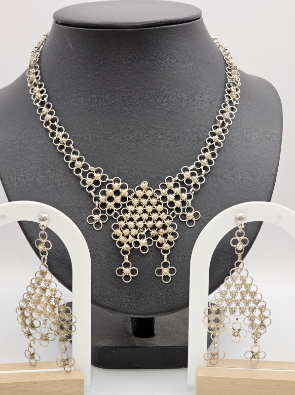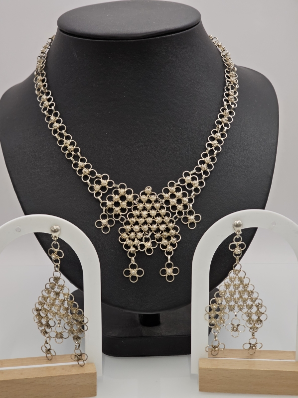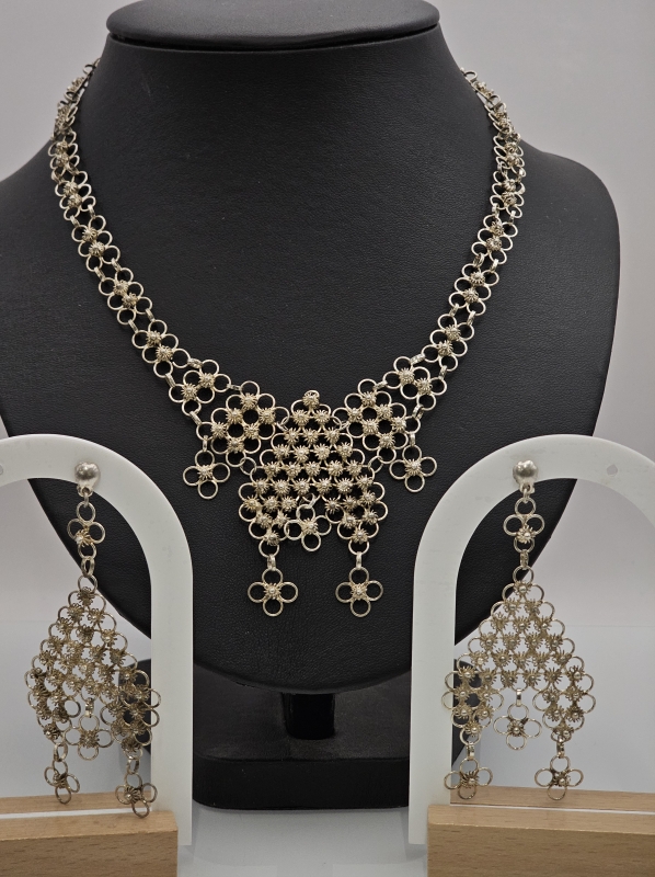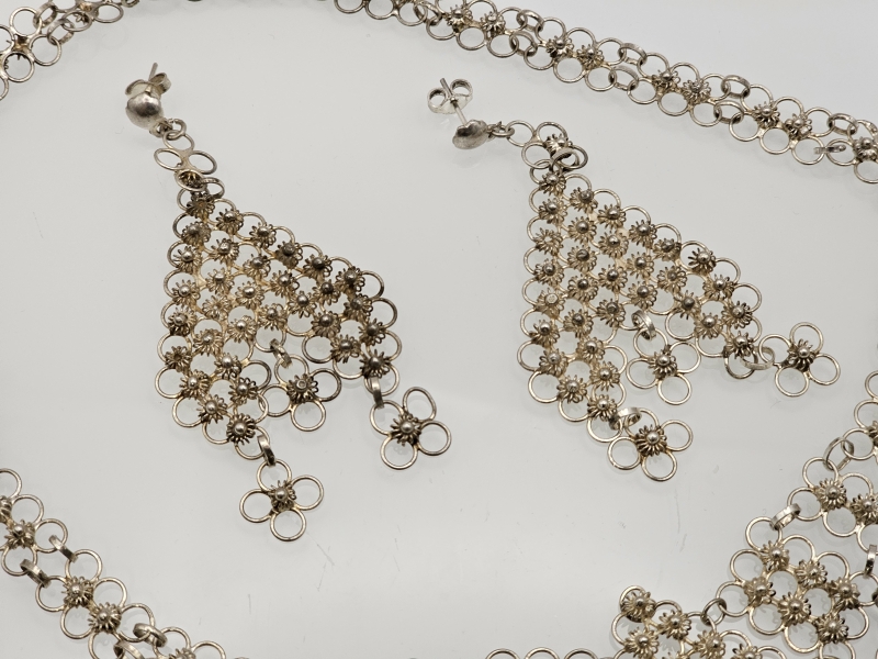 #1626 - Hopeinen filigraanikorusarja: Kaulakääty ja korvakorut
