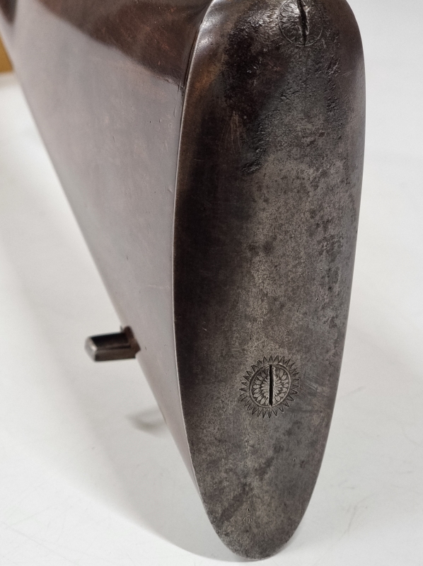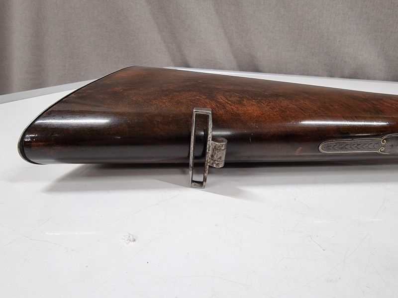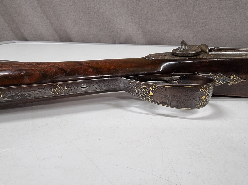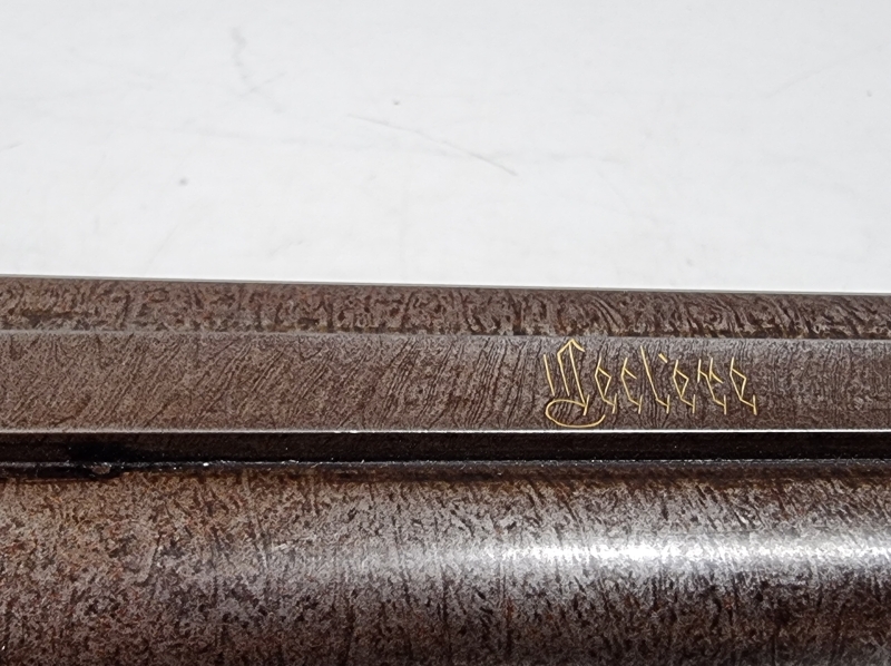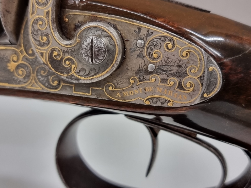 Provenienssi kuulunut Kenraali Leclerc. Piippu damaskiterästä. Kaiverrus EMM, kaiverruslaatta kultaa. "Mont de Marsan, Lts Bauhe". Hyväkuntoinen. Pituus 106cm.