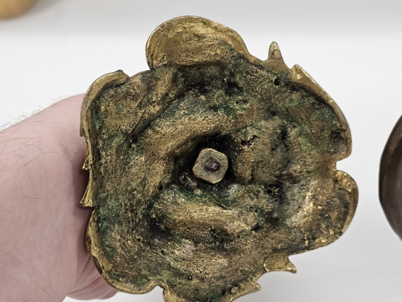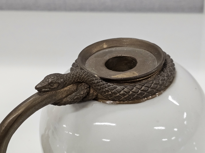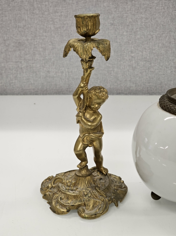 #2175 - Posliinipronssi kynttilänjalka & messinkinen n. 100v kynttilänjalka